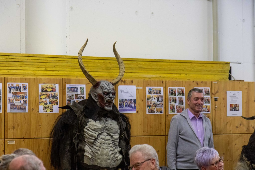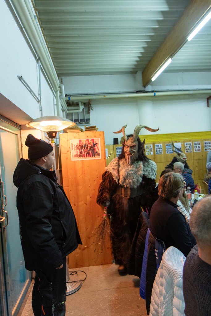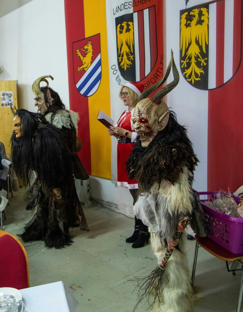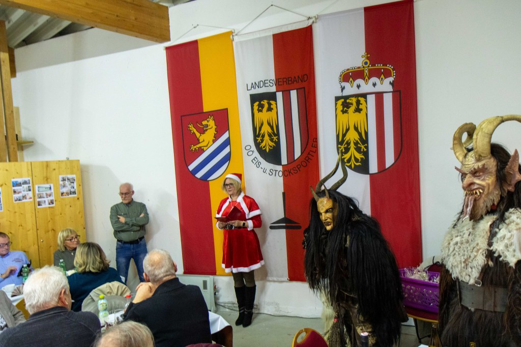 Nach einem gemütlichen Schmaus wurde uns dann von unserer Nikola (viele kennen sie auch unter Kati) ein Jahresrückblick gegeben. Diejenigen die brav waren, bekamen ein Geschenk und die nicht so braven, naja die bekamen dann von den Perchten die Rute 😉